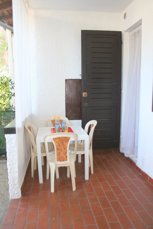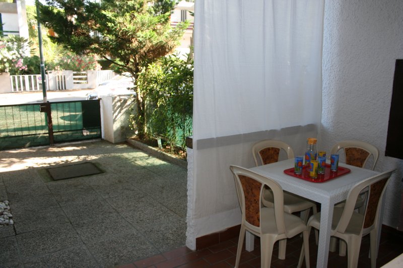 Questa villetta Bilocale è composta da: doppio giardino piastrellato e piccolo porticato con tavolino per esterno e tenda da sole, BARBECUE, ripostiglio con lavatrice ed è allacciata al gas metano;