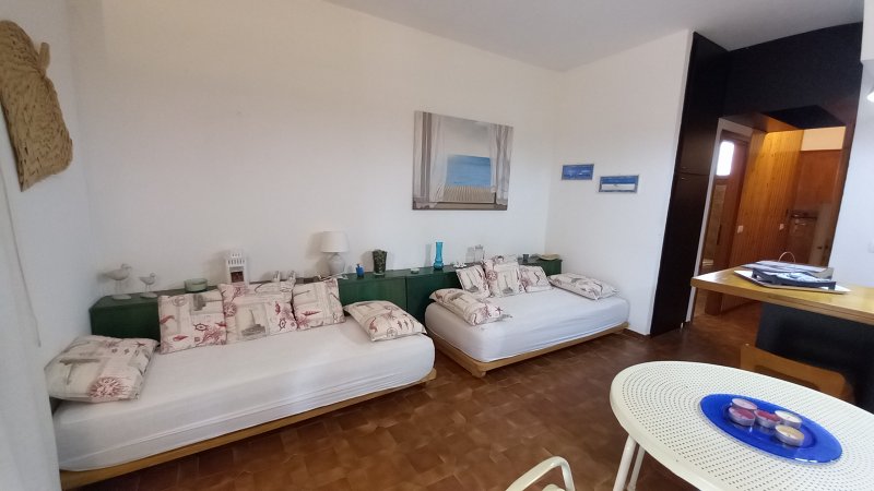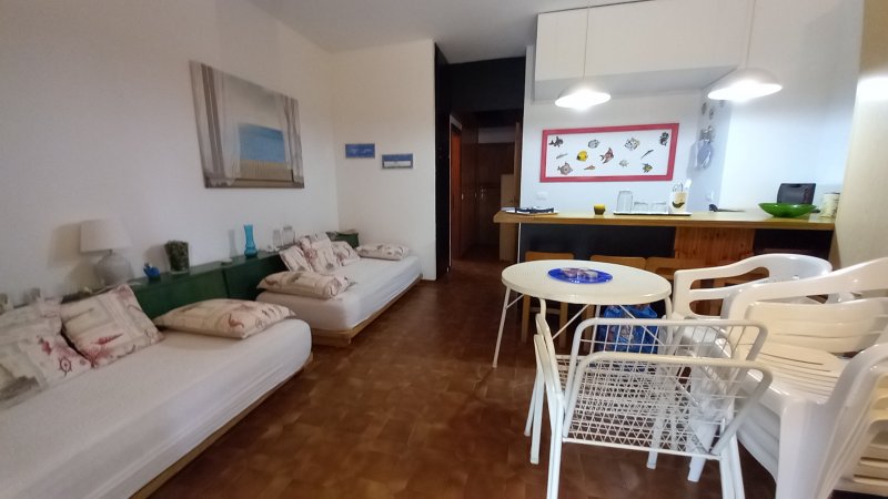 Composta da: ingresso - 1 camera MATRIMONIALE - soggiorno con angolo cottura e divano letto matrimoniale per ospiti (+ 2 divani/letto singoli), comodo bagno con box doccia. Zanzariera in camera da letto con inferriate di sicurezza.