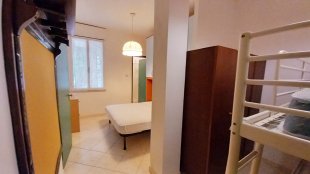 Appartamento bi/trilocale - posto al 4°e ultimo piano (con ascensore!) e CONDIZIONATORE CALDO/FREDDO: - cucina a parete e sala luminosa con accesso alla terrazza abitabile - 1 camere da letto matrimoniale ampia trasformabile in una seconda cameretta a castello - bagno ben ristrutturato finestrato con box doccia e spazio per lavatrice.